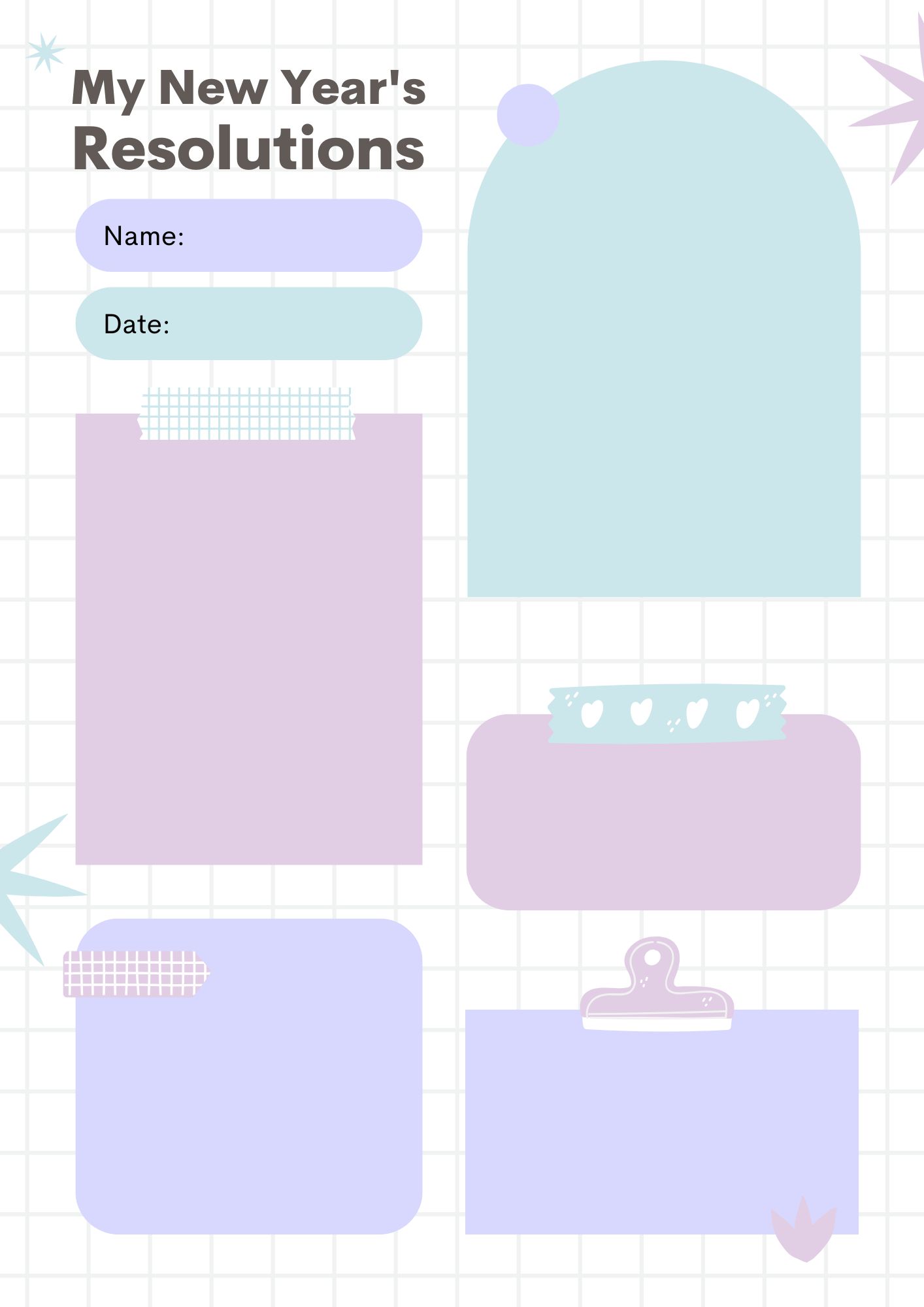 The New Year’s Resolution Planner is designed to help you set meaningful goals for the year ahead and create a clear plan to achieve them. This planner includes sections for identifying personal, professional, and lifestyle objectives, breaking them down into actionable steps, and tracking progress throughout the year. With space for reflections and quarterly reviews, this template ensures you stay motivated and on track. Whether you aim to improve your health, grow professionally, or develop new skills, this planner provides the structure you need to make your resolutions a reality.