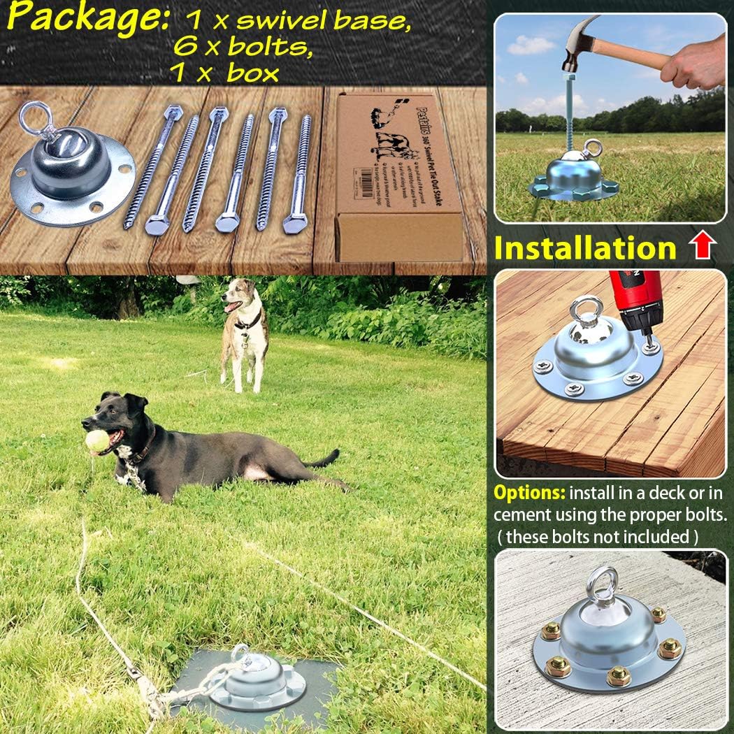 | Special Feature | 360° Swivel, Tangle Free, Great for Yard, Camping, Park, Outddor, Heavy Duty Anchors For Dogs Up to 150lbs, Made of Stainless Steel, Rust-Proof, Reflective Cable for Night Safety |